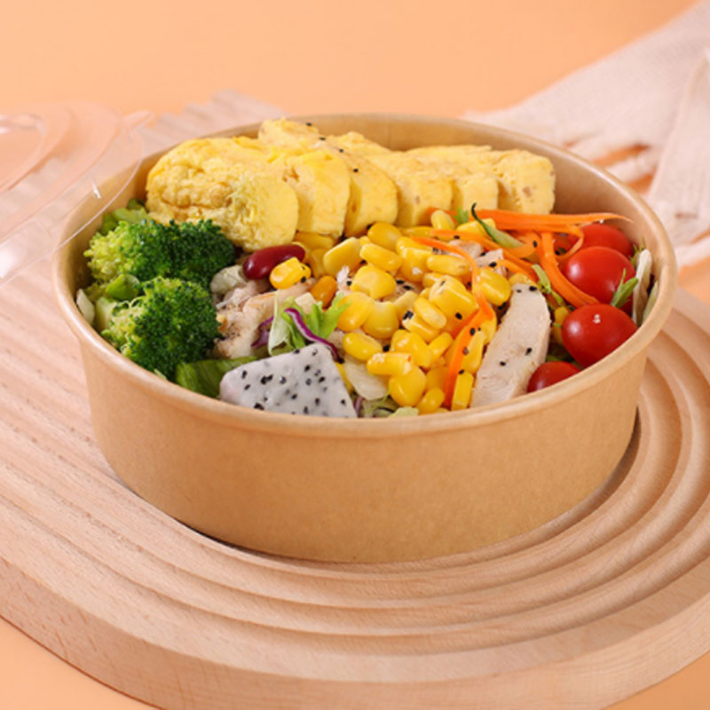 Hontai Package® Biodegradable Kraft Salad Paper Bowl, With a tight cover and no leakage, the use of the inner film design waterproof and oil-proof takeaway package is a good choice.